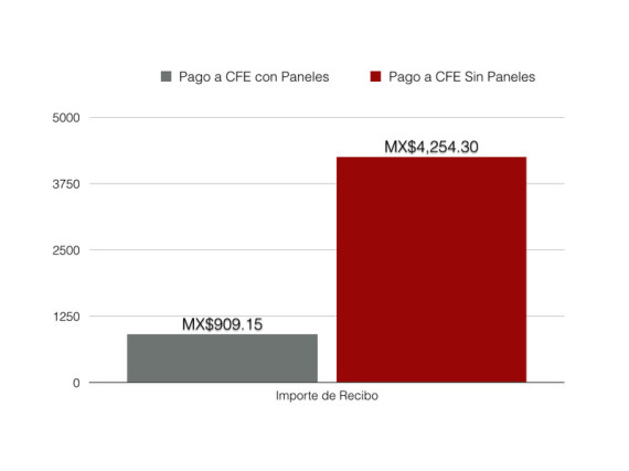 Si se lleva a cabo una instalación de paneles solares fotovoltaicos puede generar hasta un 90% de ahorro en su consumo y por lo tanto reducir el pago bimestral a CFE.