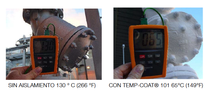 TEMP-COAT® 101 se adhiere directamente al sustrato bloqueando la humedad y ayudando a frenar la Corrosión Bajo el Aislamiento (CUI), proporciona un sistema de aislamiento sin